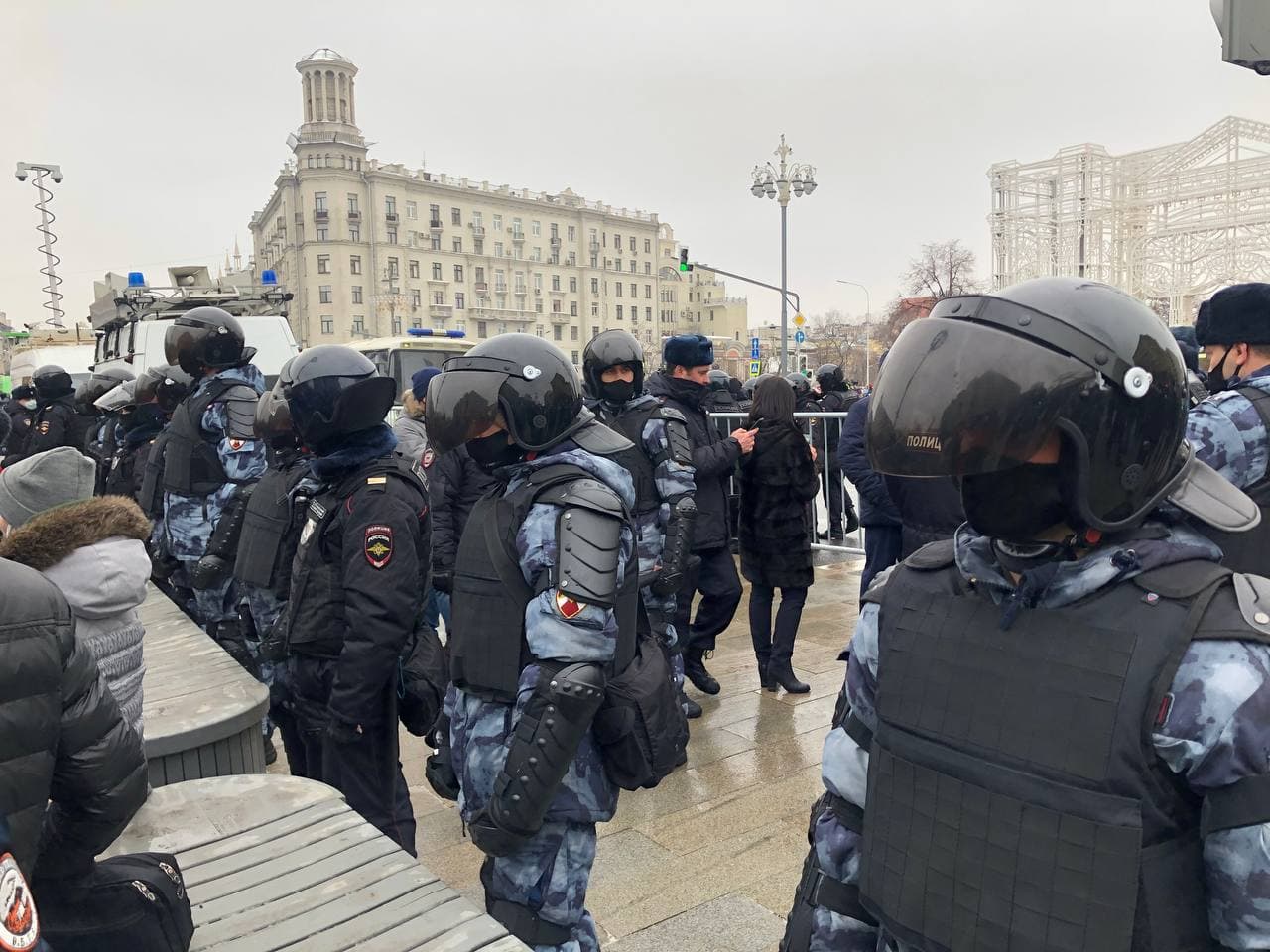 На Пушкинской площади стоят автозаки. Сотрудники Росгвардии ходят «змейкой» и вылавливают людей из толпы. Перекрыли Красную площадь. С Малой Дмитровки подходят росгвардейцы в экипировке. Также к Пушкинской площади подходят сторонники Захара Прилепина из движения «За правду».