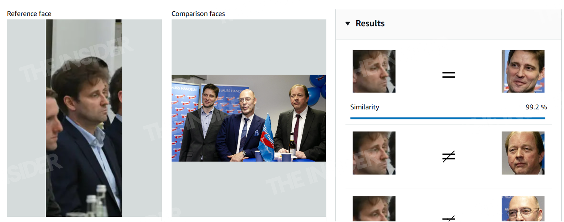 Немецкая правопопулистская партия «Альтернатива для Германии» стала единственной организацией, о чьем участии не было прямо заявлено ни в одной публикации ультраправых. Лицо ее представителя — депутата от партии в городском парламенте Гамбурга Роберта Риша — старательно заблюрили на большинстве фотографий. На вопросы The Insider о целях поездки и о том, почему организаторы заблюрили его лицо, Риш не ответил.